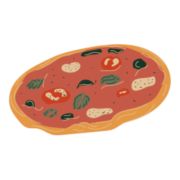 Sauce tomate San Marzano D.O.P, mozzarella fleur de lait, poivrons marinées, pickles oignons, merguez végétales, pickles piquant, origan.